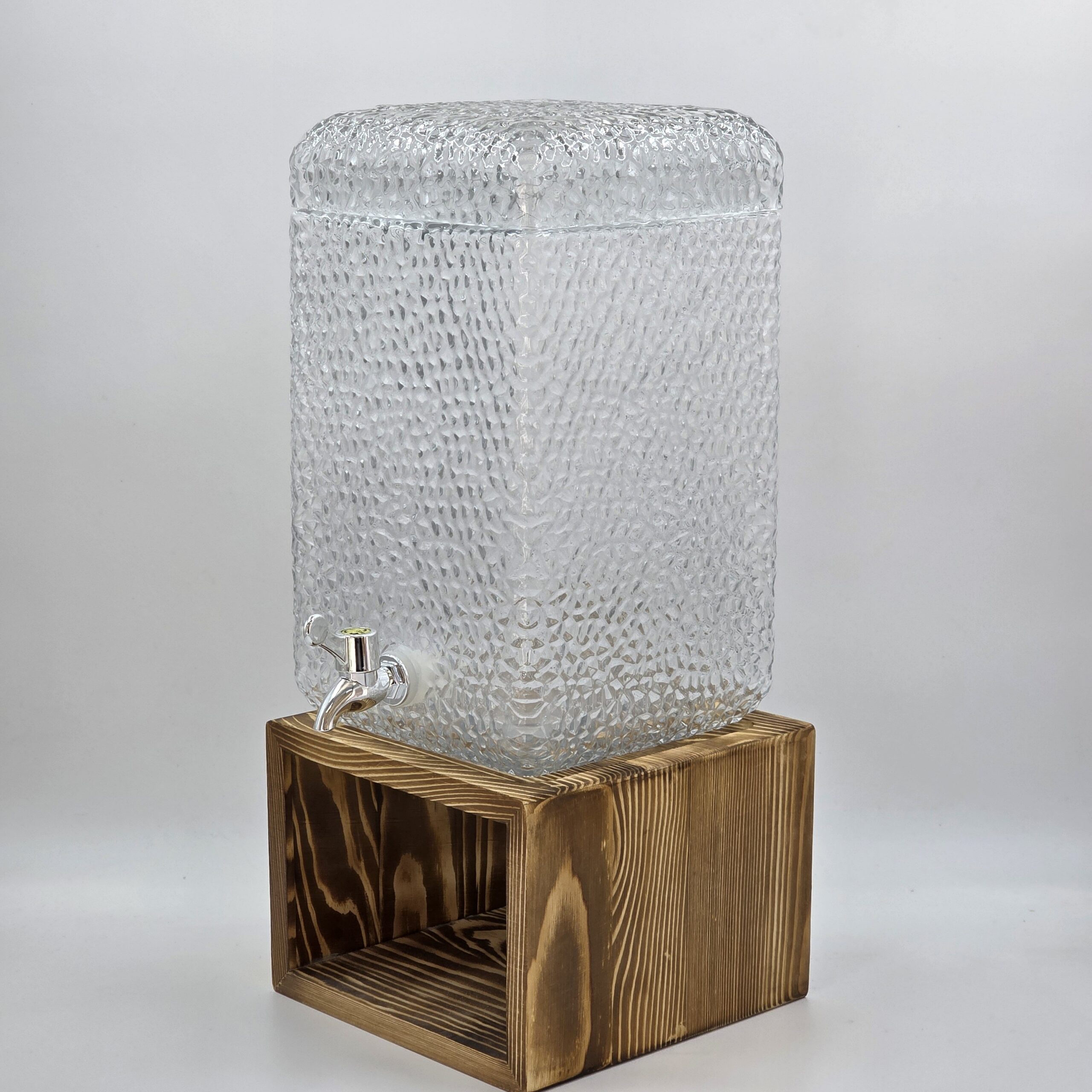 DISPENSER C/TAPA DE VIDRIO CUADRADO Y BASE DE MADERA PINO X 8000 ML