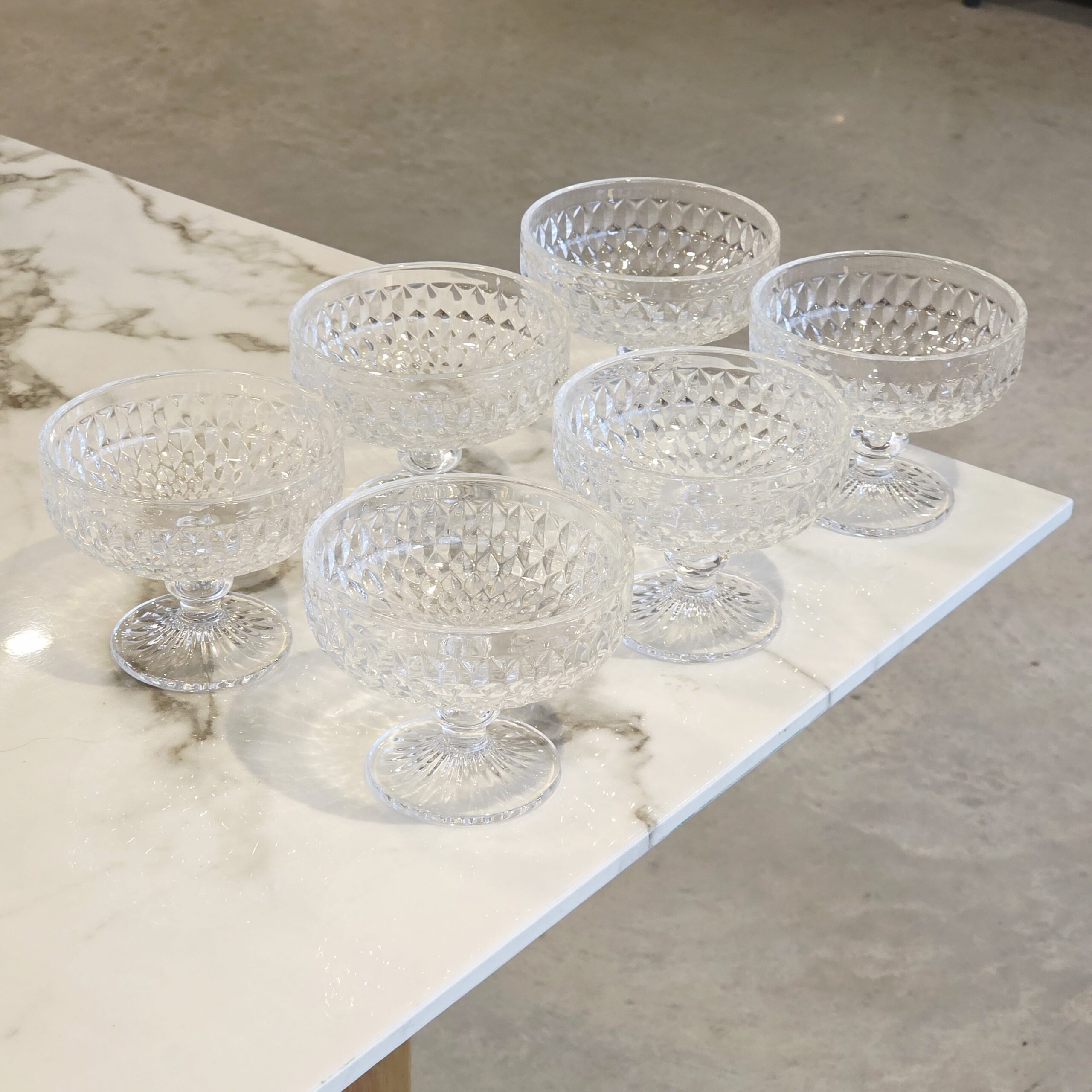 SET X 6 COMPOTERAS DE VIDRIO LABRADAS TRANSPARENTE (56-7)